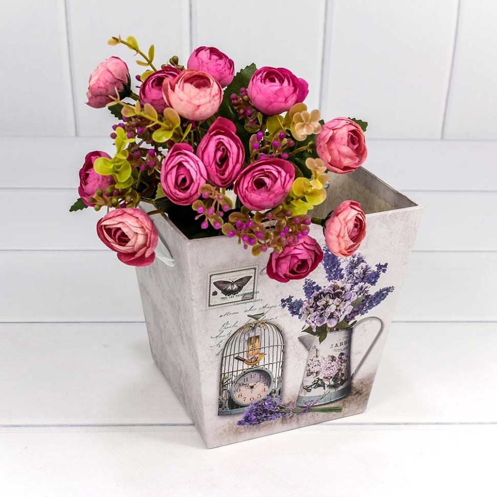 Коробка Ваза для цветов 14.5х14.5х15 см "Сирень в вазе" с ручками (Серый)