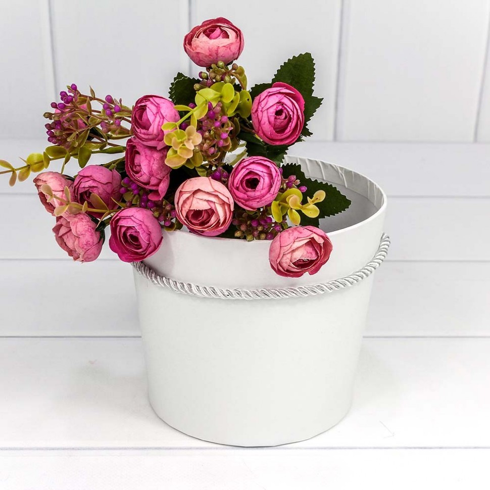 Коробка Ваза для цветов 15х13 см с ручкой (Белый)