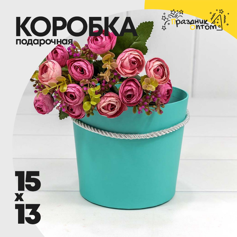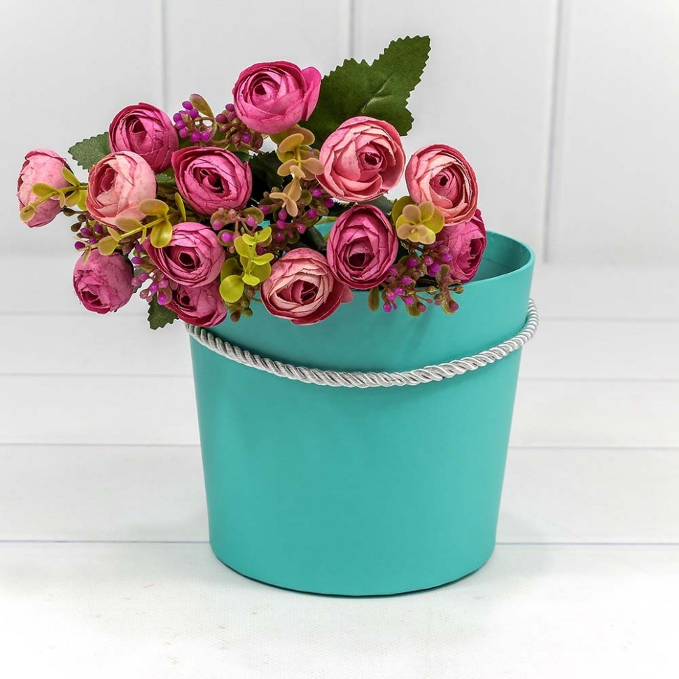 Коробка Ваза для цветов 15х13 см с ручкой (Бирюзовый)