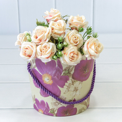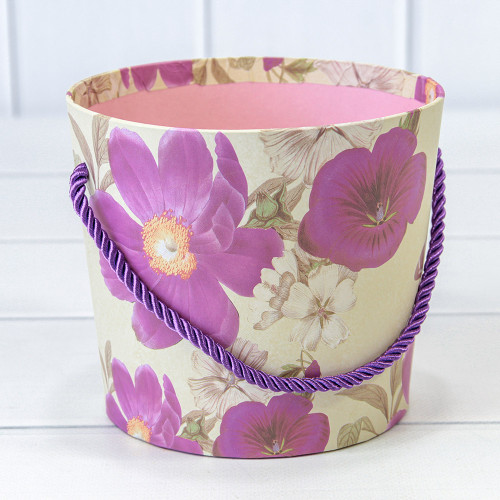 Коробка Ваза для цветов 15х13 см "Цветы" с ручкой (Белый)