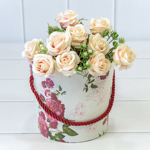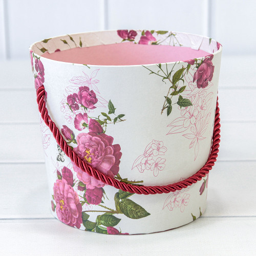 Коробка Ваза для цветов 15х13 см "Цветы" с ручкой (Белый)