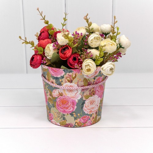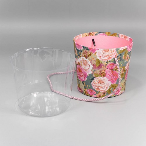 Коробка Ваза для цветов 15х13 см "Цветы" с ручкой (Розовый)