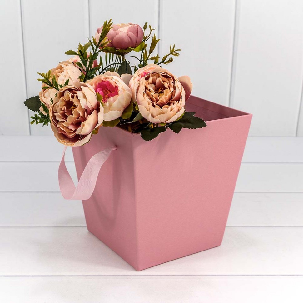 Коробка Ваза для цветов 17х17х18 см с ручками (Розовый)
