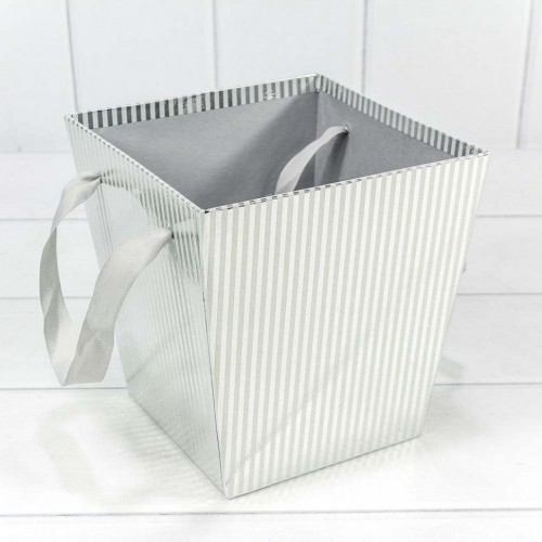 Коробка Ваза для цветов 17х17х18 см с ручками (Серебряный)