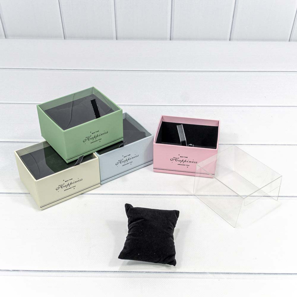 Коробка Ювелирная 10х8.5х6 см Набор 4 шт с прозрачной крышкой и подушкой (Микс)