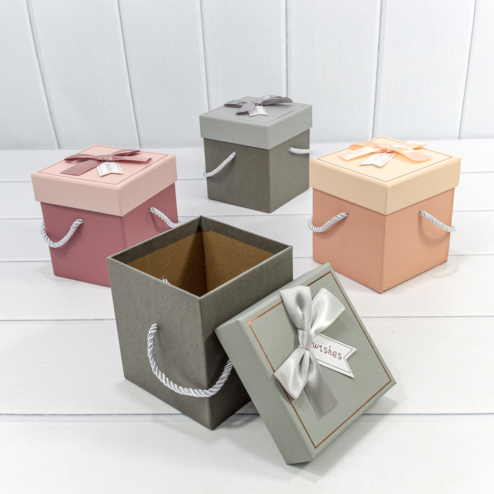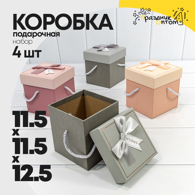Коробка Ювелирная 11.5х11.5х12.5 см Набор 4 шт с бантом и ручками (Микс)