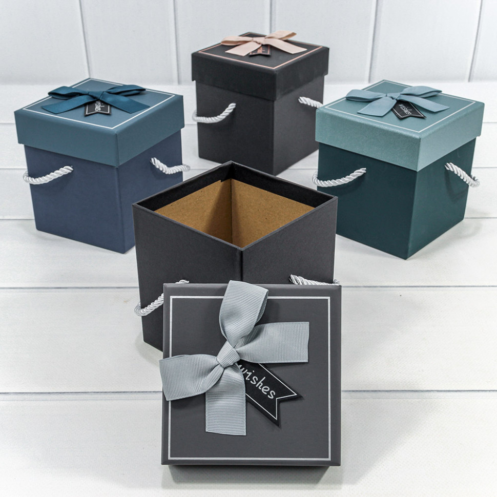 Коробка Ювелирная 11.5х11.5х12.5 см Набор 4 шт с бантом и ручками (Микс)