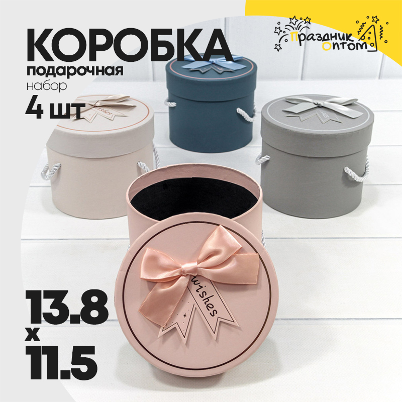 Коробка Ювелирная 13.8х11.5 см Набор 4 шт с бантом и ручками (Микс)