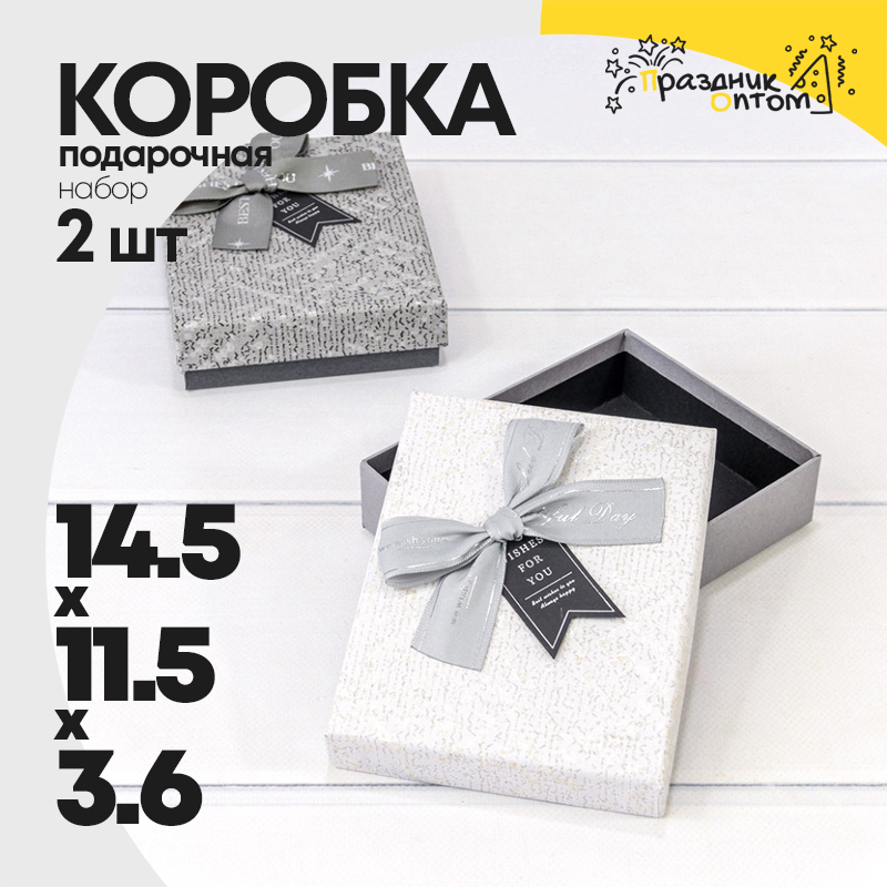 Коробка Ювелирная 14.5х11.5х3.6 см Набор 2 шт с бантом (Микс)