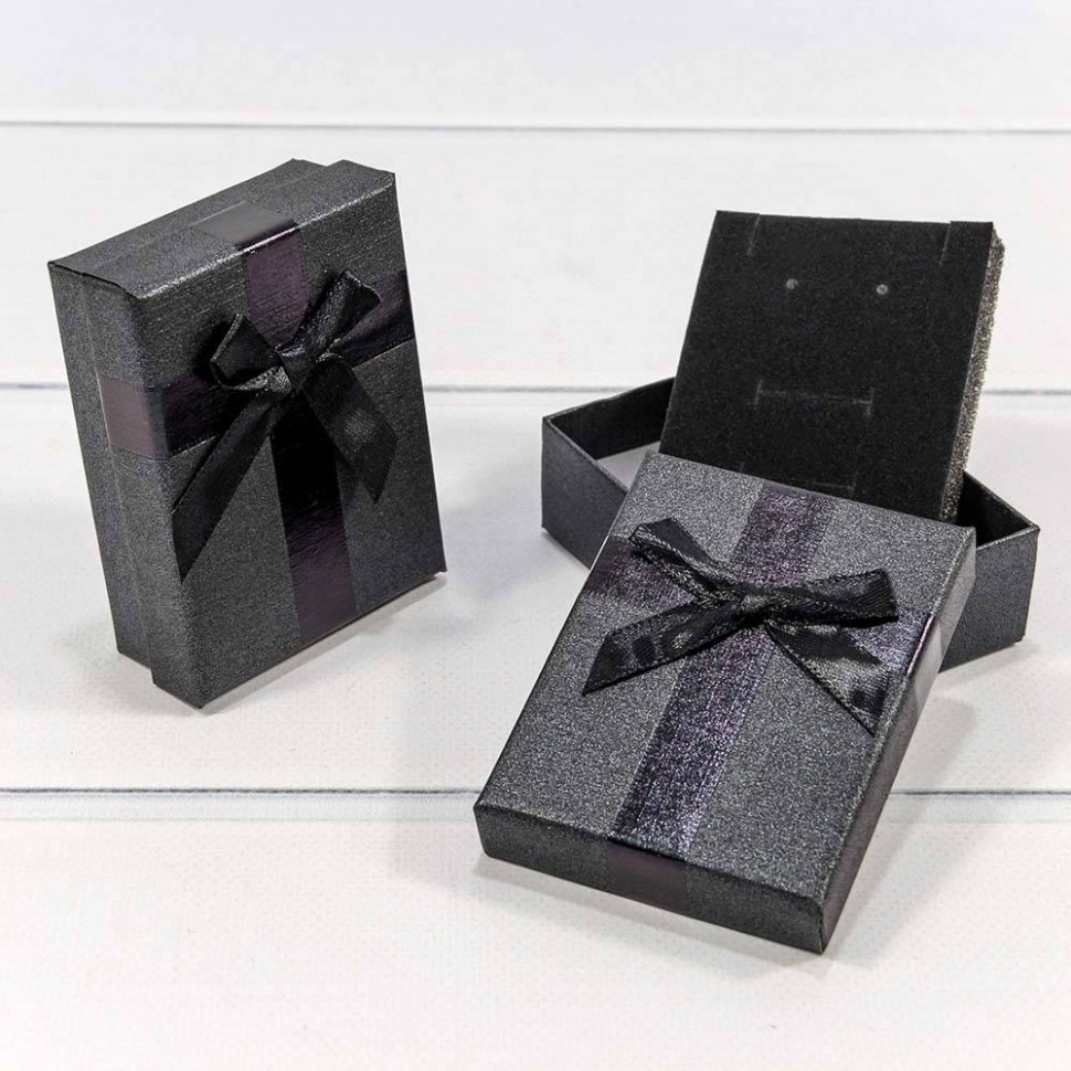 Коробка Ювелирная 7х9х3 см Набор 2 шт с бантом (Черный)
