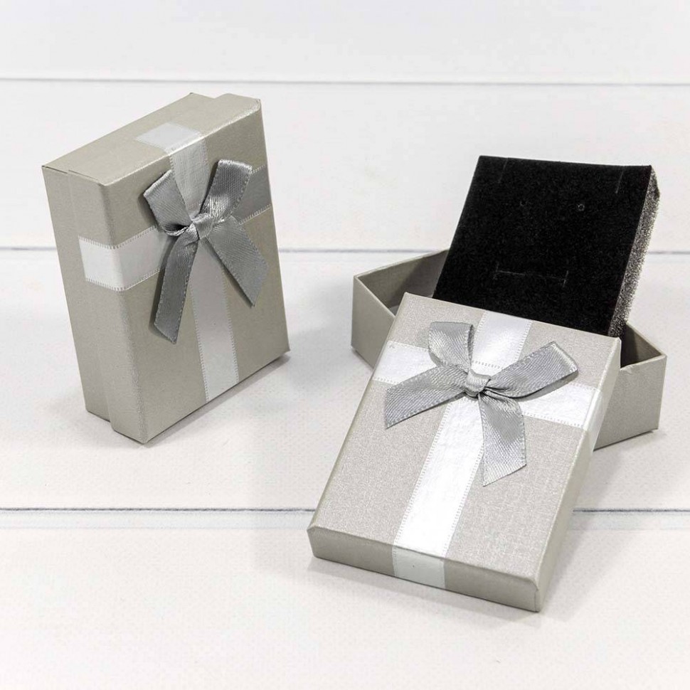 Коробка Ювелирная 7х9х3 см Набор 2 шт с бантом (Серебряный)