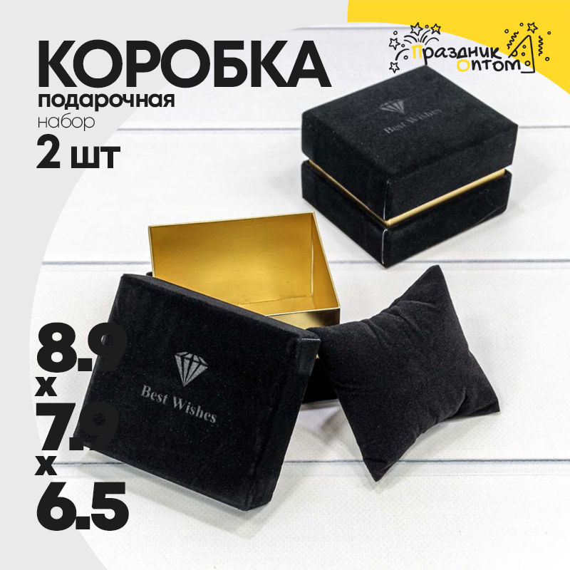 Коробка Ювелирная 8.9х7.9х6.5 см Набор 2 шт бархатная (Черный)