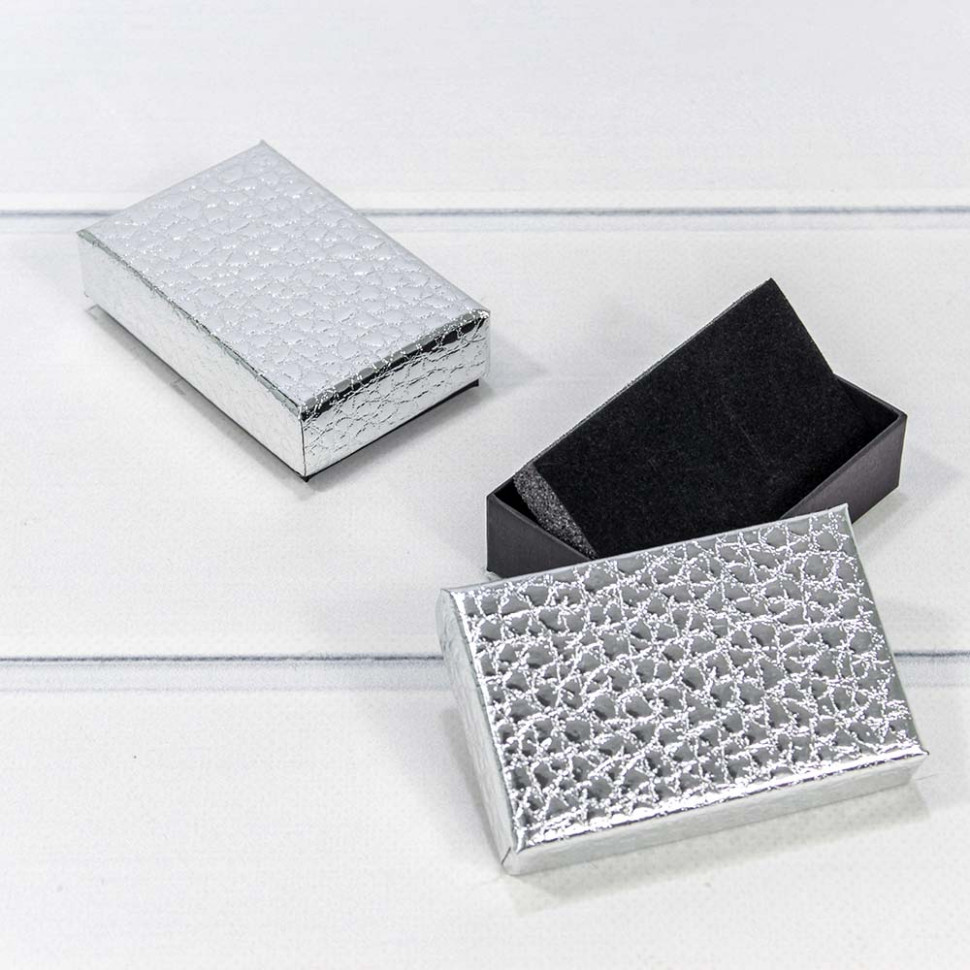 Коробка Ювелирная 8х5х2.5 см Набор 2 шт "Кожа крокодила" (Серебряный)