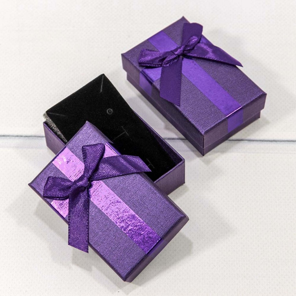 Коробка Ювелирная 8х5х2.5 см Набор 2 шт с бантом (Фиолетовый)
