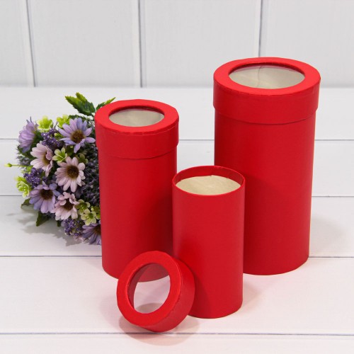 Коробка Ювелирная 9.5х18 см Набор 3 шт с окошком (Красный)