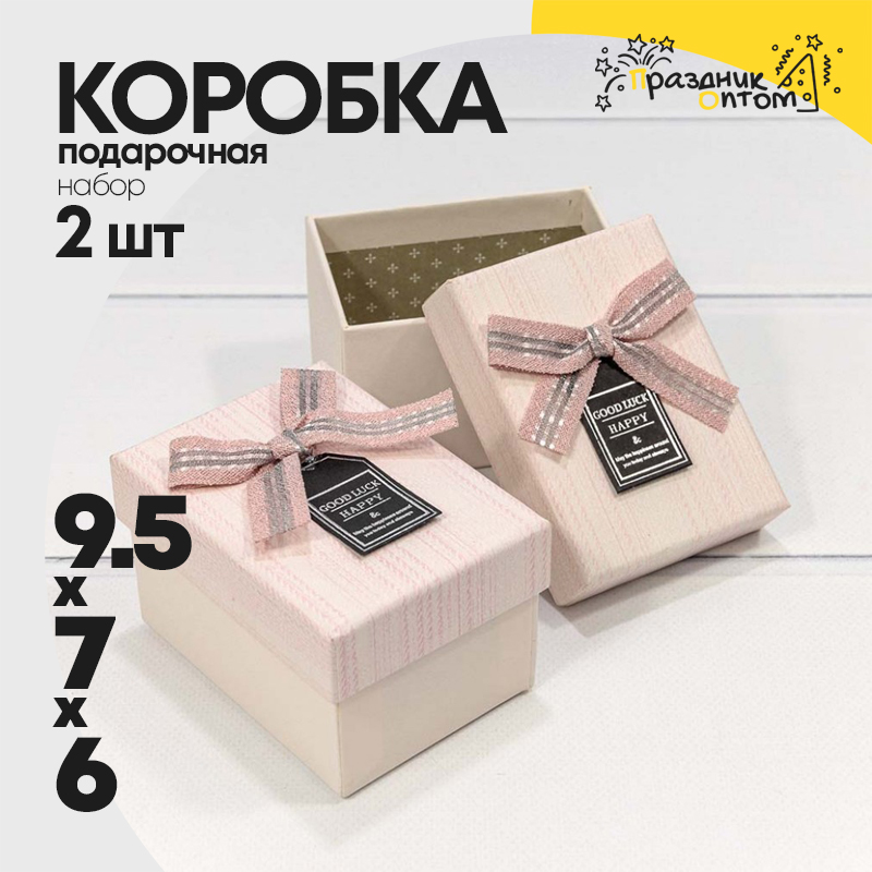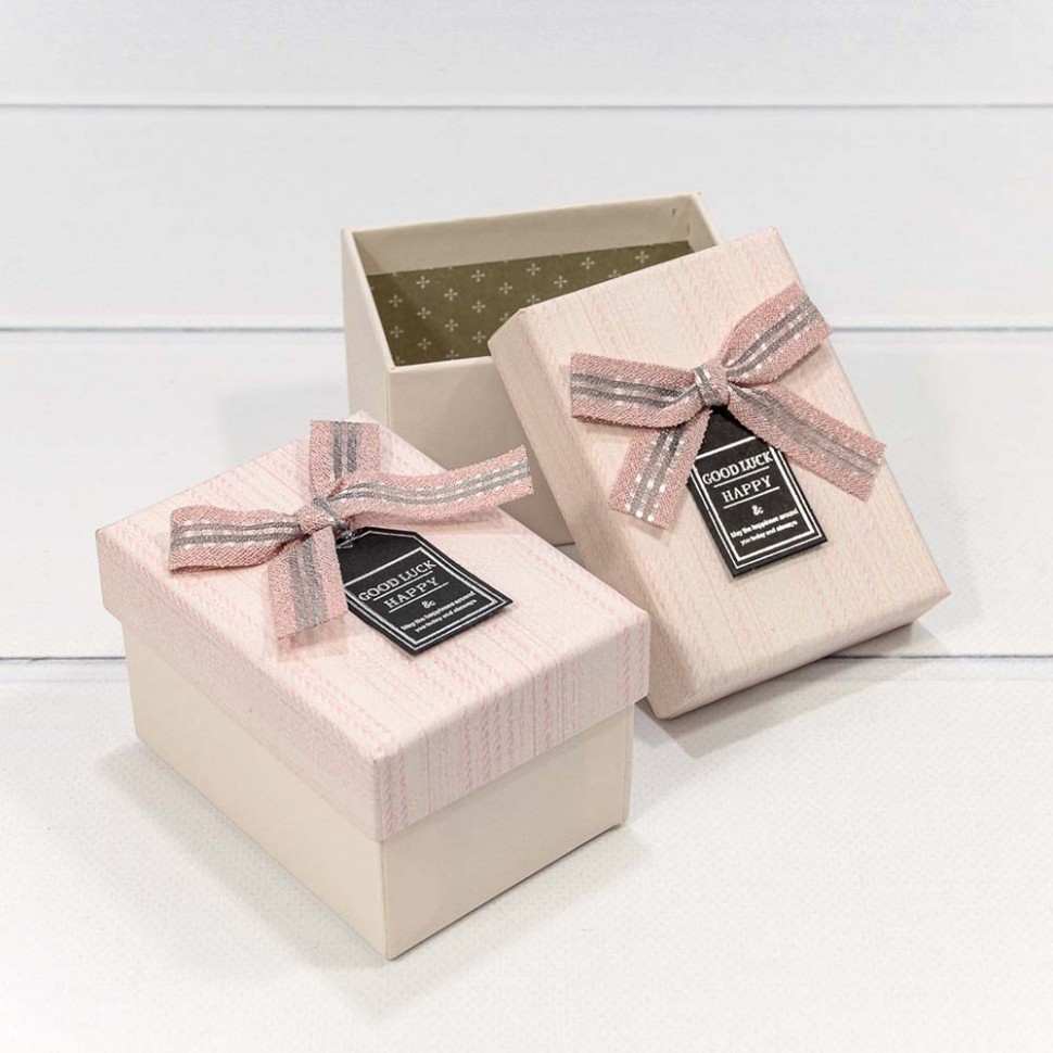 Коробка Ювелирная 9.5х7х6 см Набор 2 шт с бантом (Розовый)