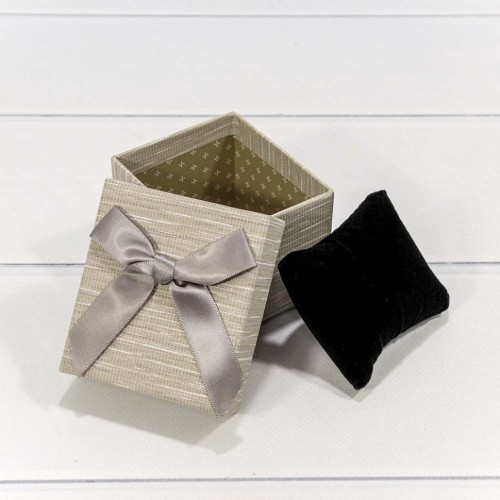 Коробка Ювелирная 9.5х8.5х7 см с бантом и подушкой внутри (Серый)