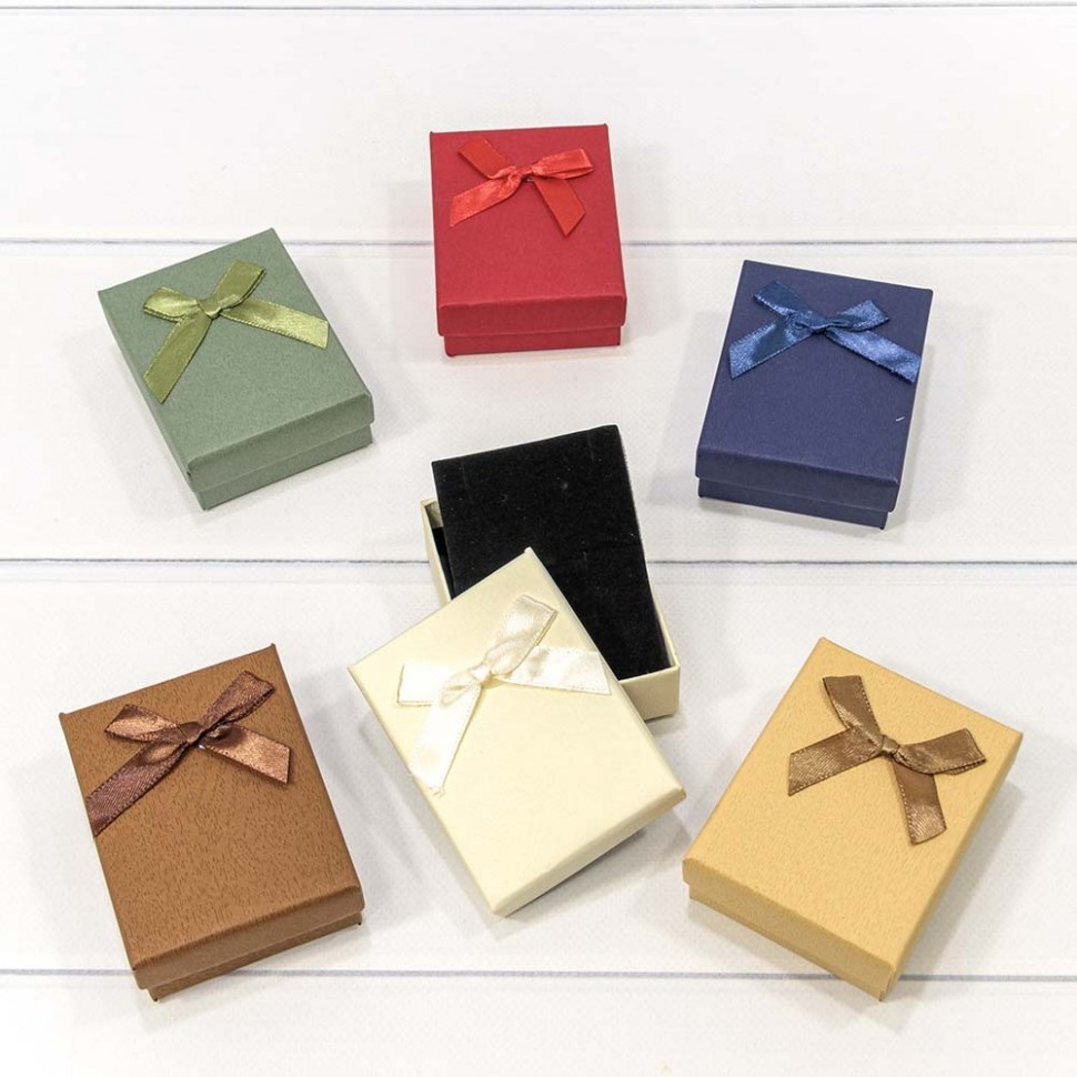 Коробка Ювелирная 9х7х2.8 см Набор 6 шт с бантом (Микс)