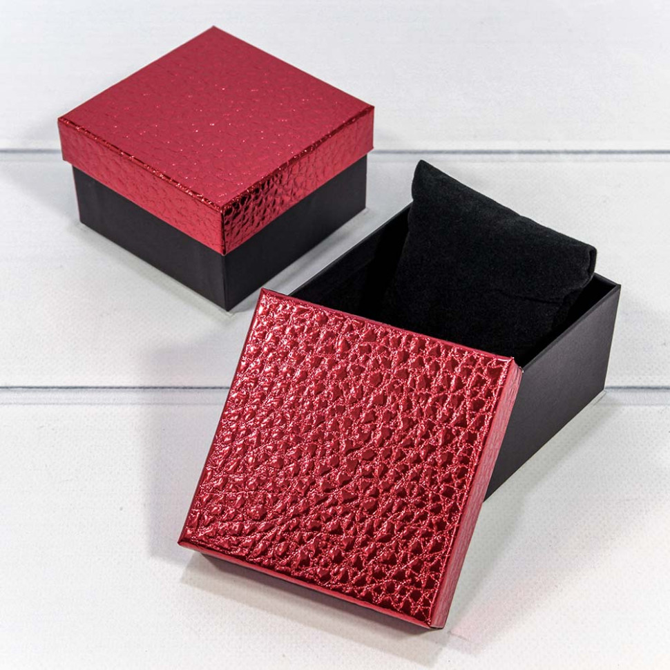 Коробка Ювелирная 9х9х5.5 см Набор 2 шт "Кожа крокодила" (Красный)