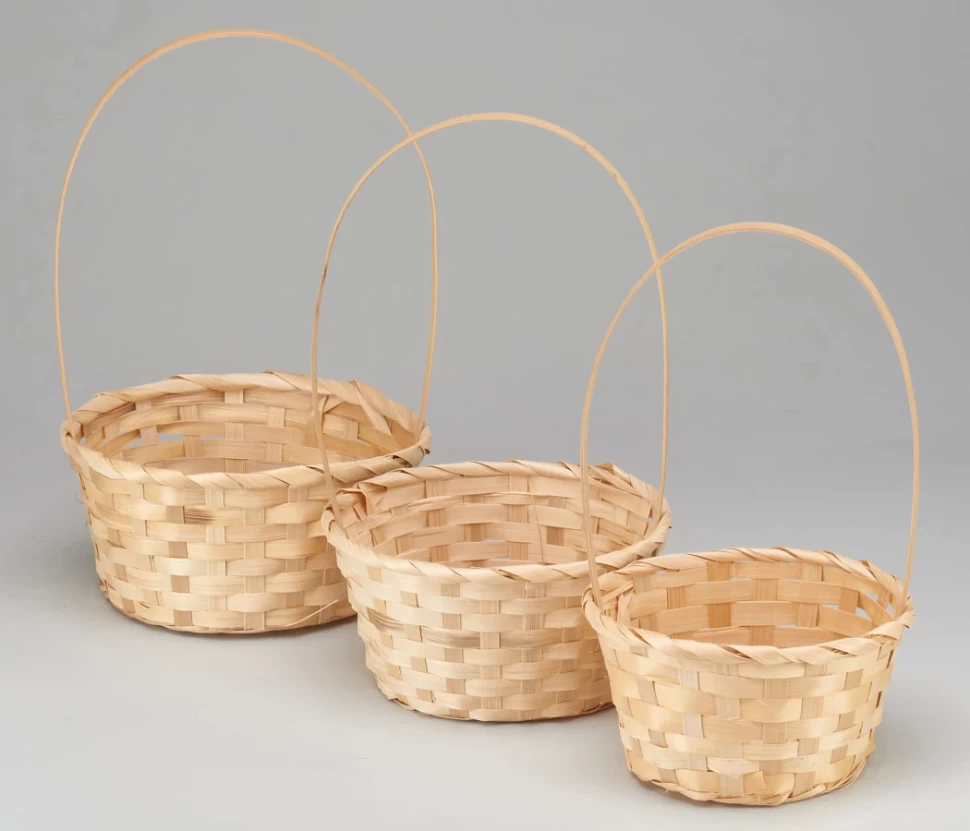 Корзина 21х10х36 см Набор 3шт Бамбук с ручкой (Бежевый)