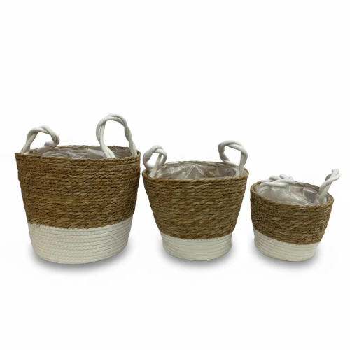 Корзина 30х25см Набор 3шт Рогоз с ручкой (Натуральный)