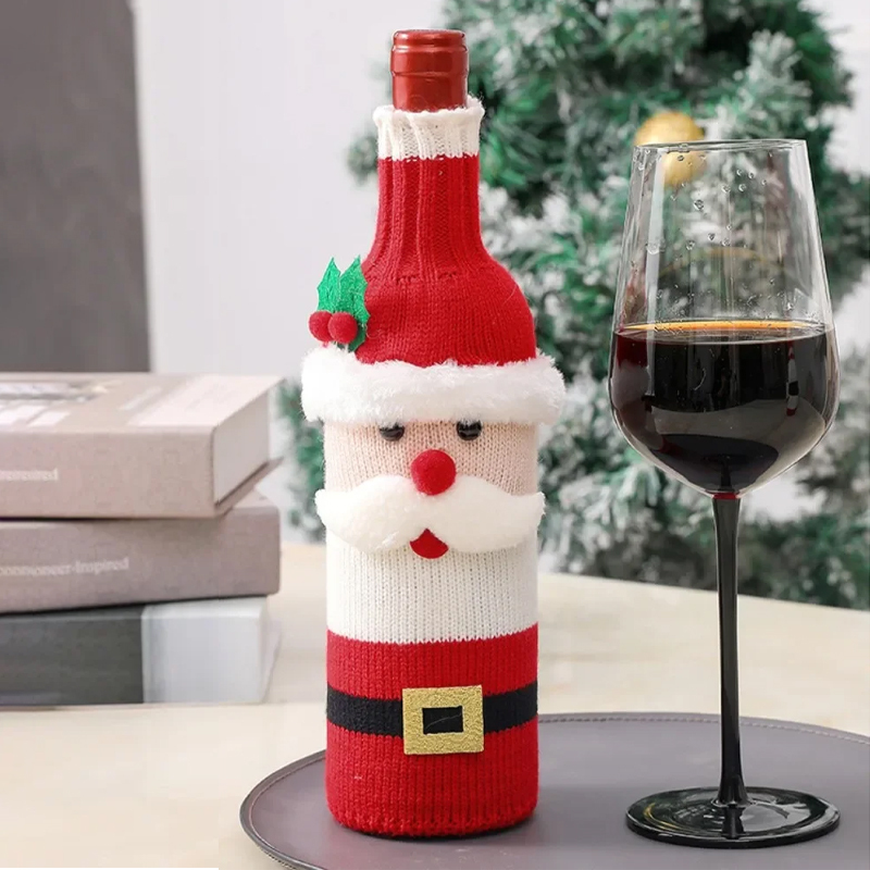 костюм для бутылки вина санта новогодний (красный, белый)