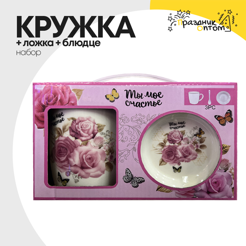 Кружка + Ложка + Блюдце Набор "Love"