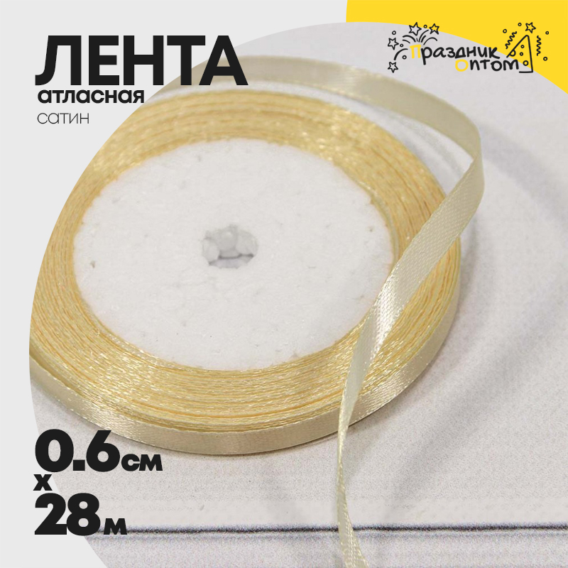 Лента Атласная 0,6см х 28м Сатин (Бежевый)