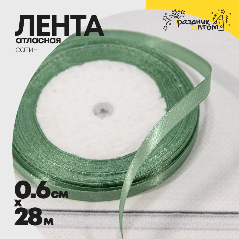 Лента Атласная 0,6см х 28м Сатин (Зеленый)