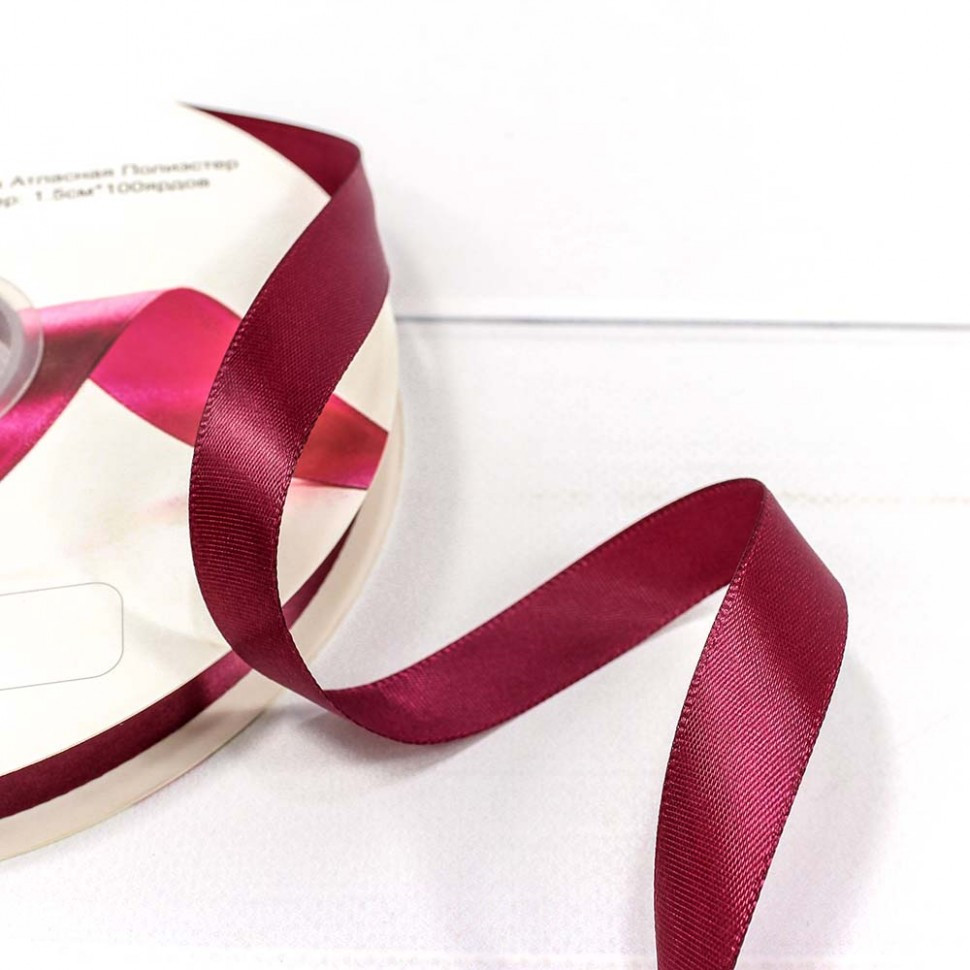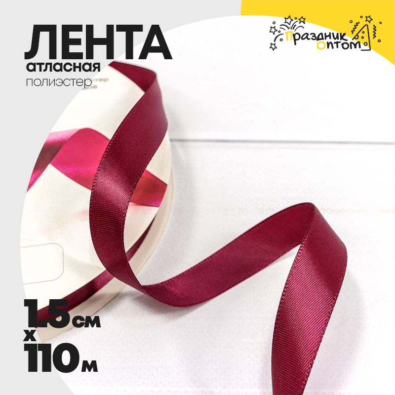 Лента Атласная 1,5см х 110м Полиэстер класс А (Красный)