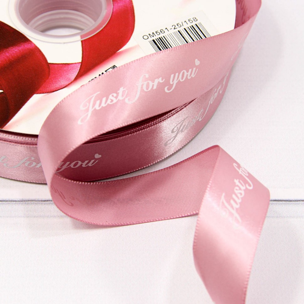 Лента Атласная 2,5см х 110м Полиэстер "Just For You" с печатью (Розовый)