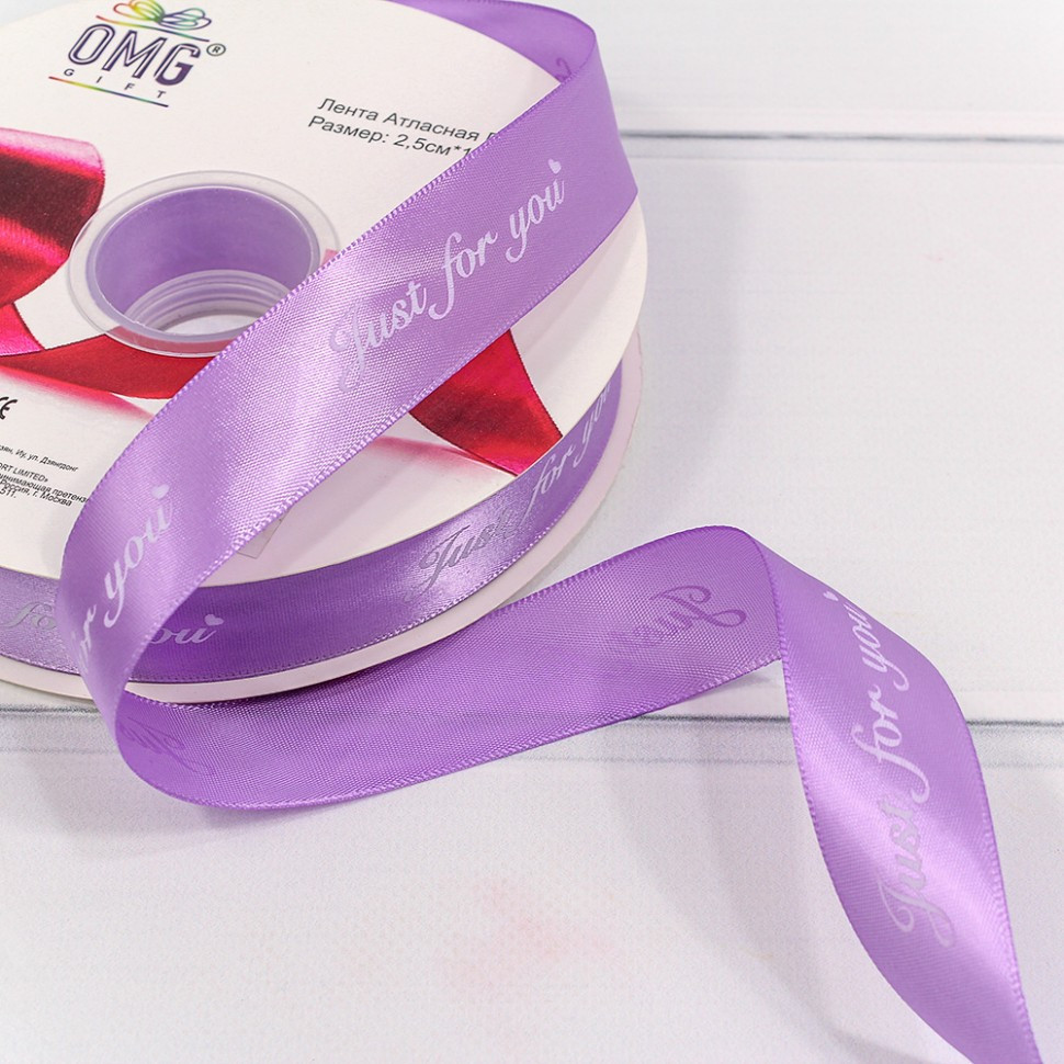 Лента Атласная 2,5см х 110м Полиэстер "Just For You" с печатью (Сиреневый)