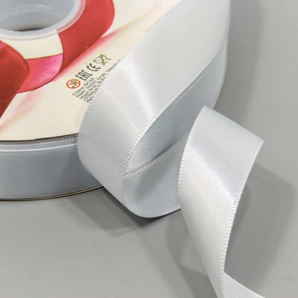 Лента Атласная 2,5см х 110м Полиэстер класс А (Белый)