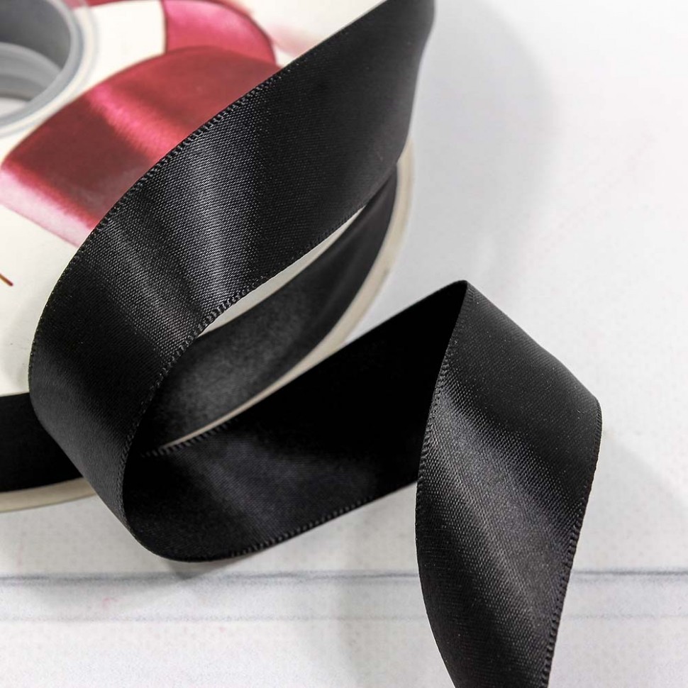 Лента Атласная 2,5см х 110м Полиэстер класс А (Черный)