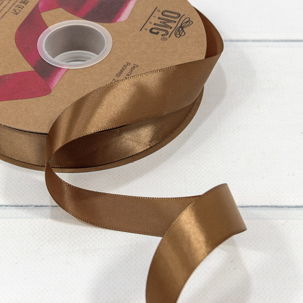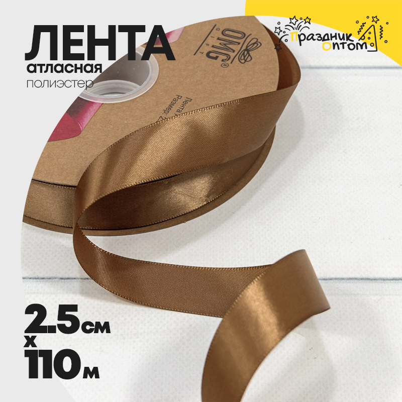 Лента Атласная 2,5см х 110м Полиэстер класс А (Коричневый)