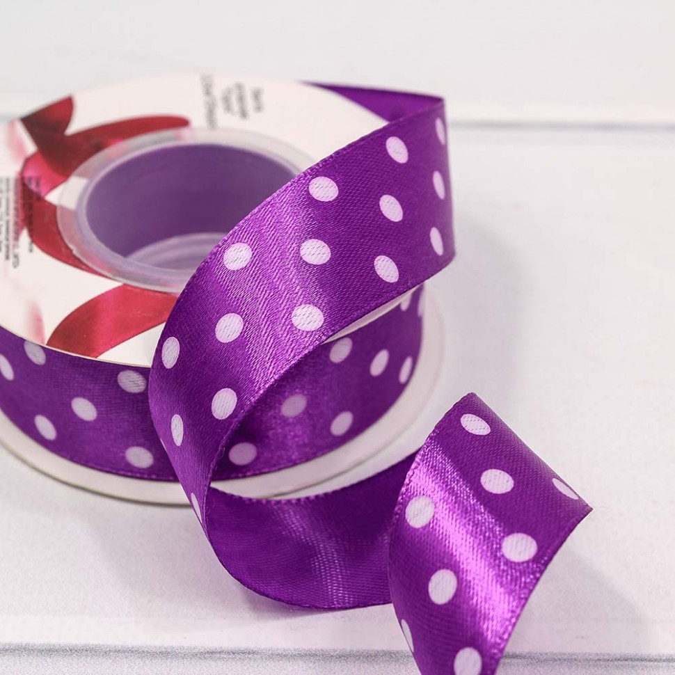 Лента Атласная 2,5см х 28м Сатин горох (Фиолетовый)