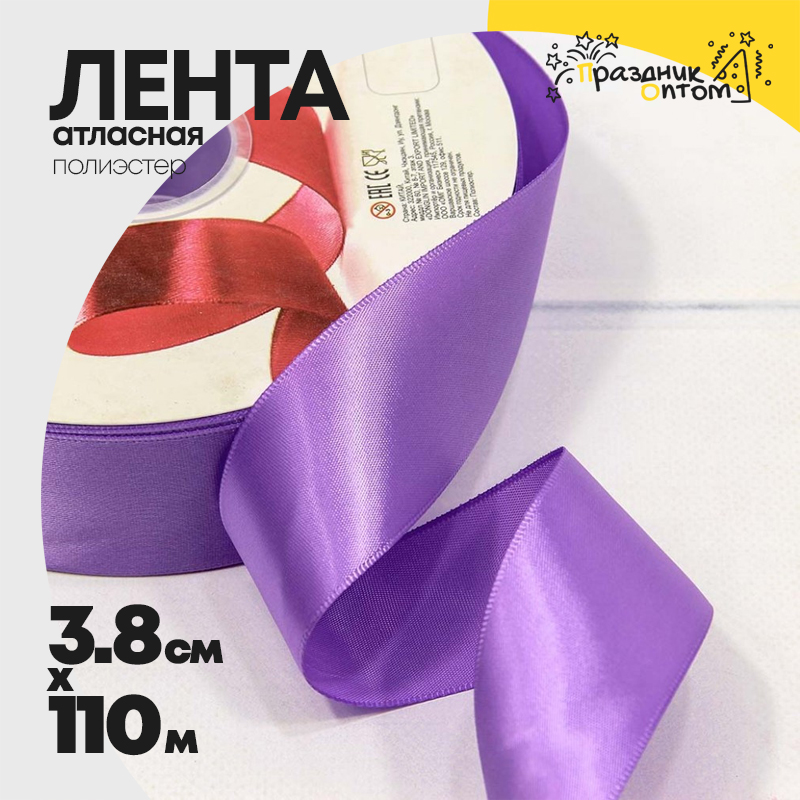 Лента Атласная 3,8см х 110м Полиэстер класс А (Фиолетовый)