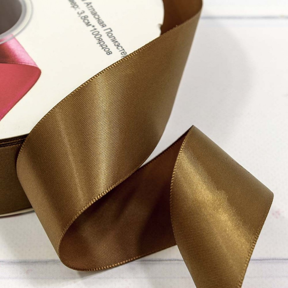 Лента Атласная 3,8см х 110м Полиэстер класс А (Коричневый)