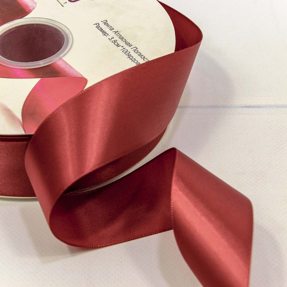 Лента Атласная 3,8см х 110м Полиэстер класс А (Красный)