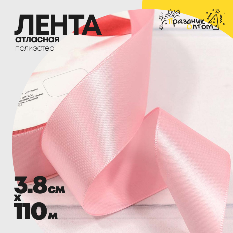 Лента Атласная 3,8см х 110м Полиэстер класс А (Розовый)