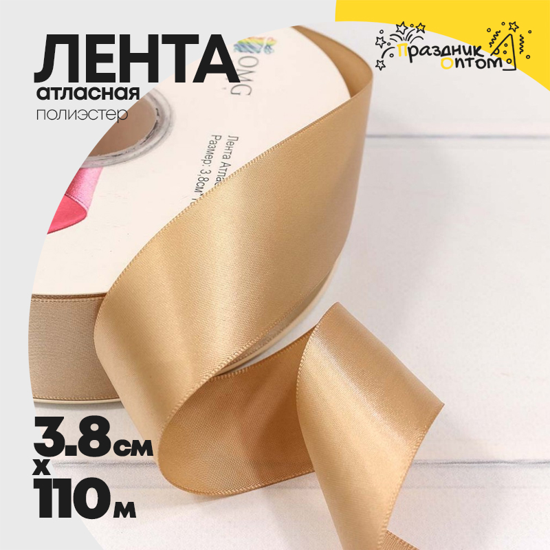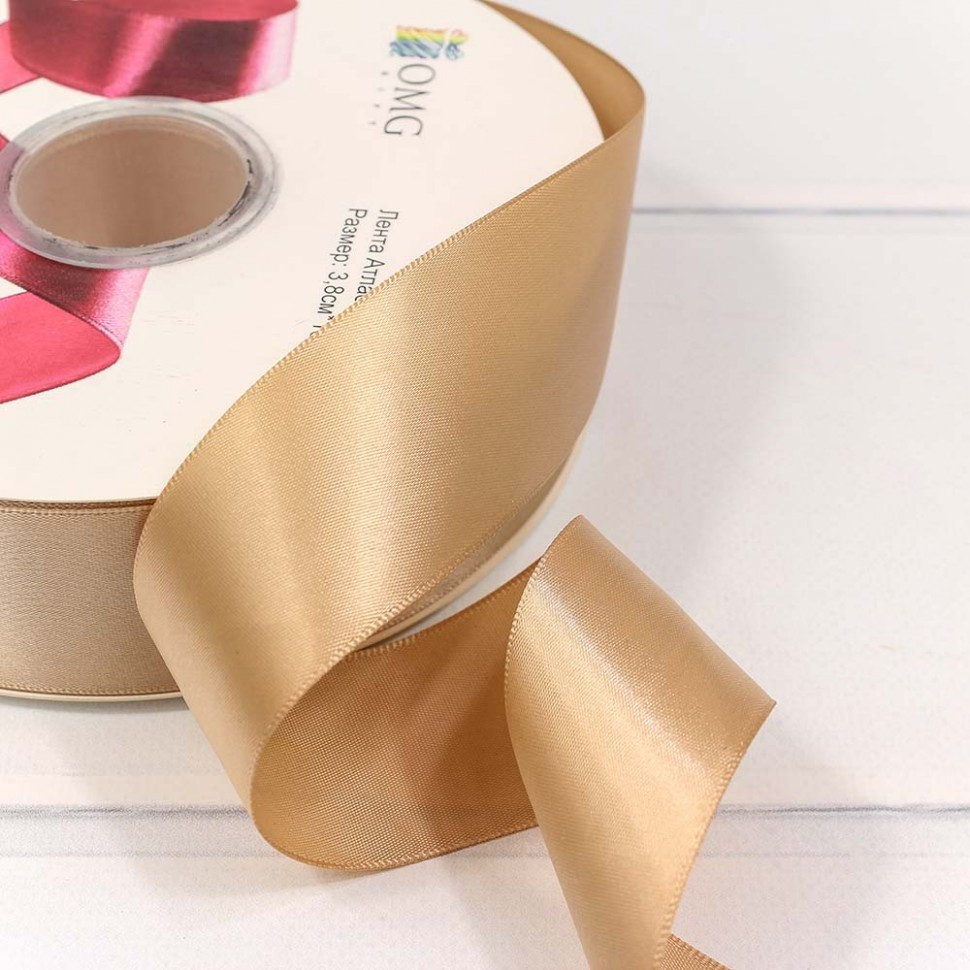 Лента Атласная 3,8см х 110м Полиэстер класс А (Золотой)
