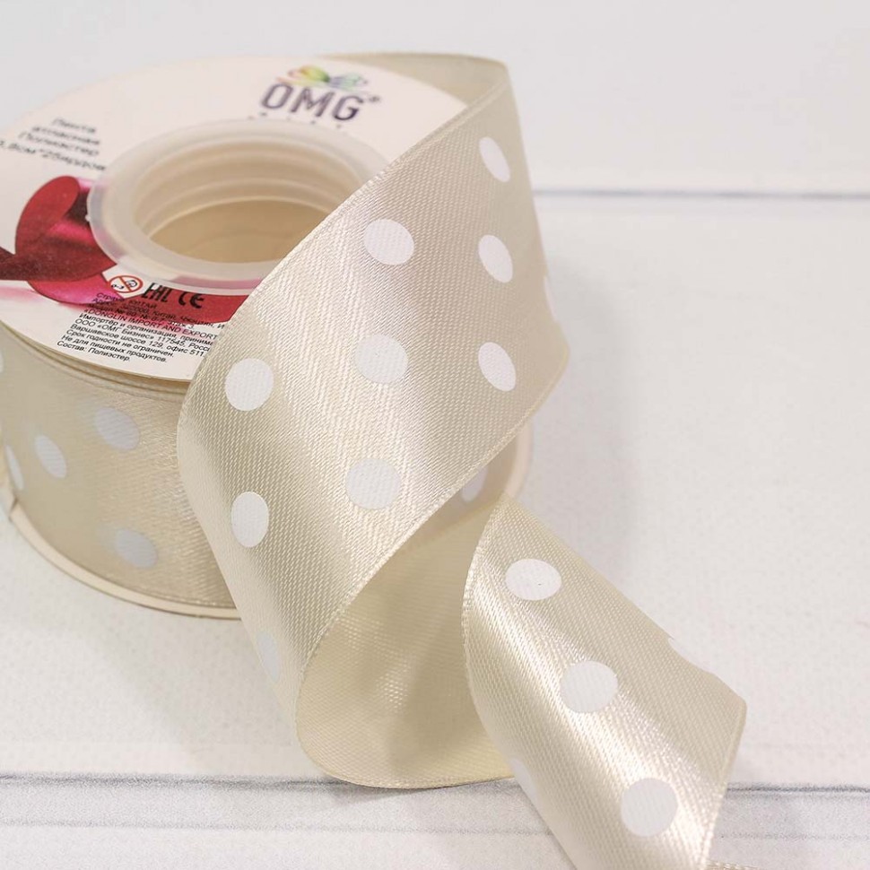 Лента Атласная 3,8см х 28м Сатин горох (Бежевый)