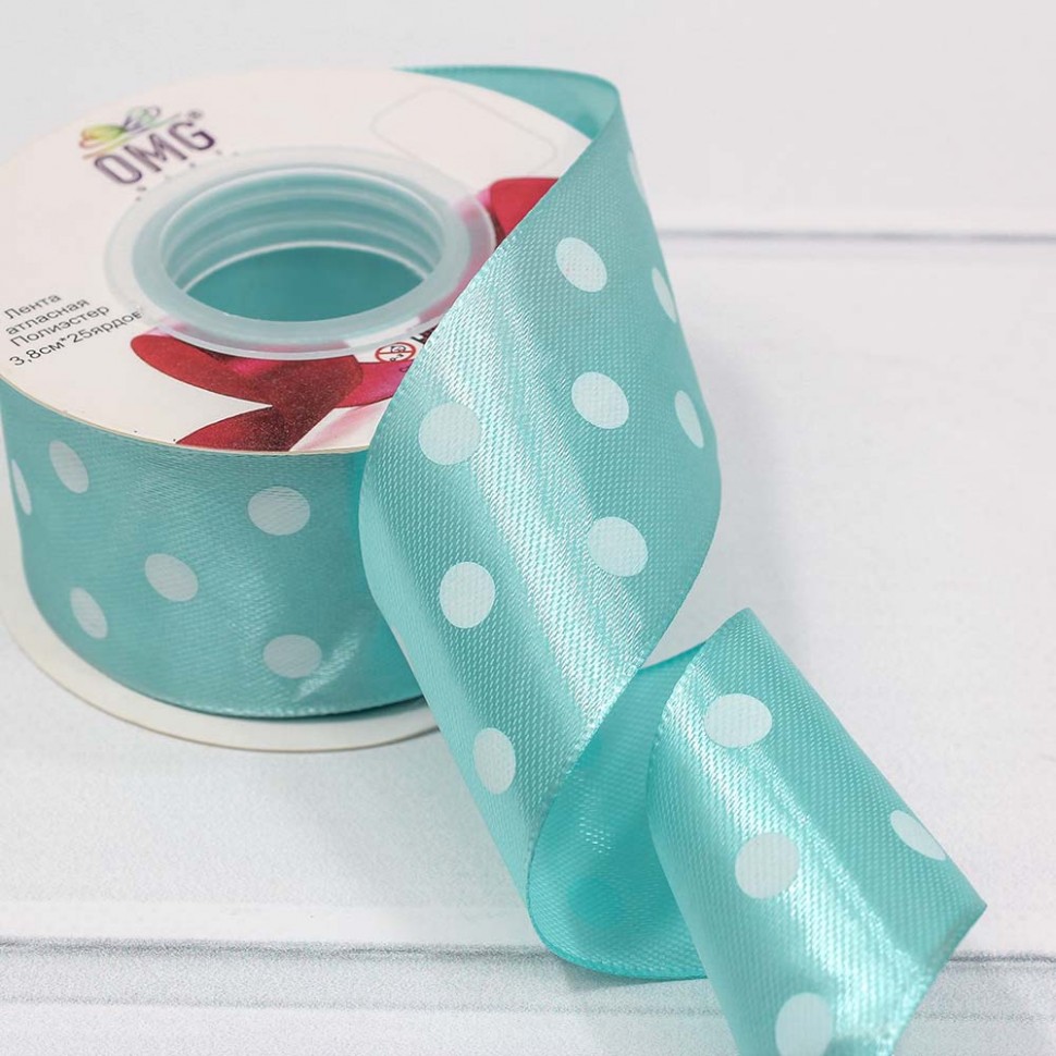 Лента Атласная 3,8см х 28м Сатин горох (Голубой)