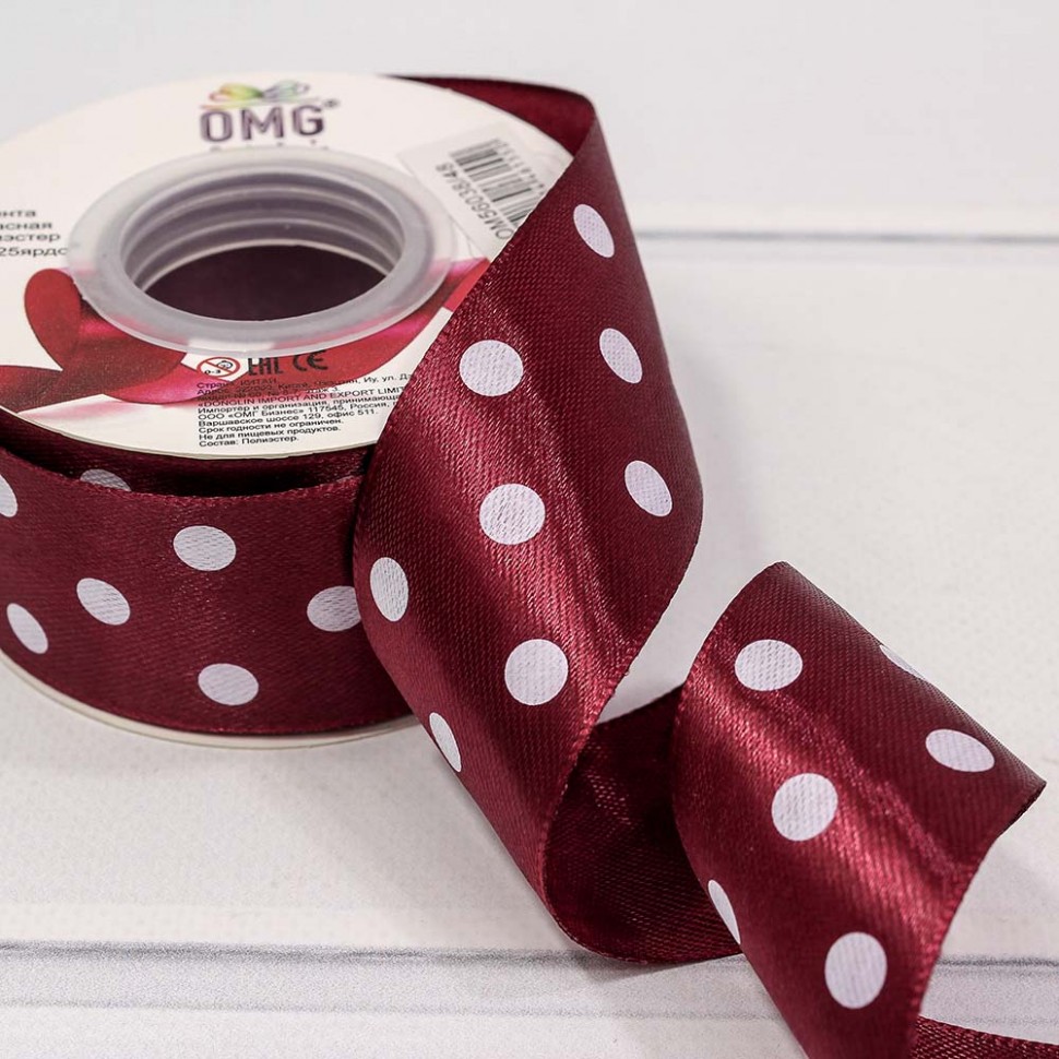 Лента Атласная 3,8см х 28м Сатин горох (Вишневый)
