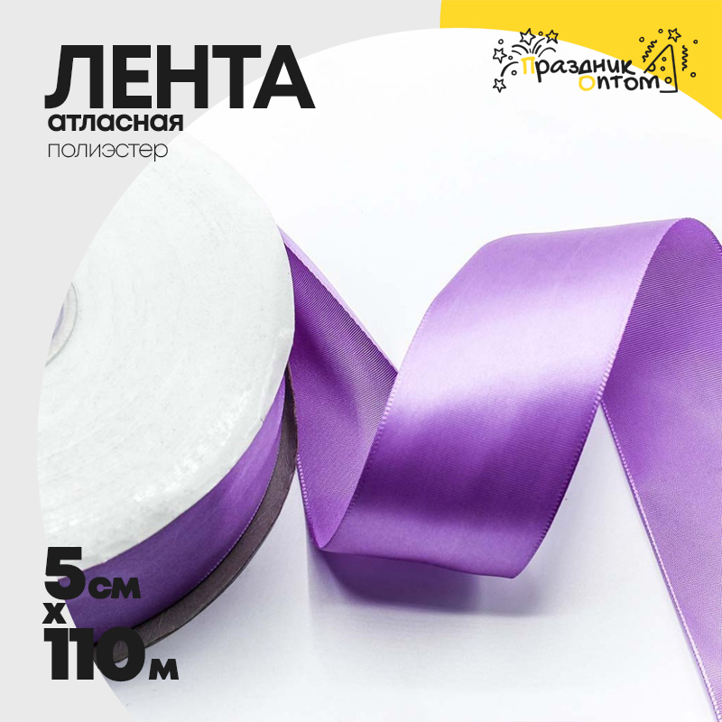 Лента Атласная 5см х 110м Полиэстер класс А (Фиолетовый)
