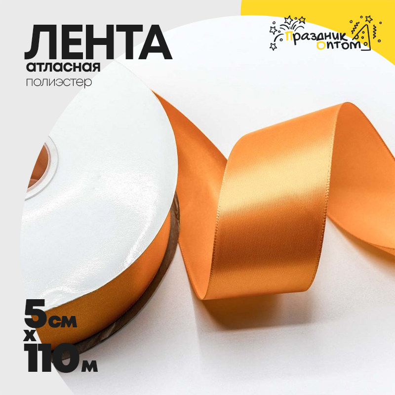 Лента Атласная 5см х 110м Полиэстер класс А (Оранжевый)