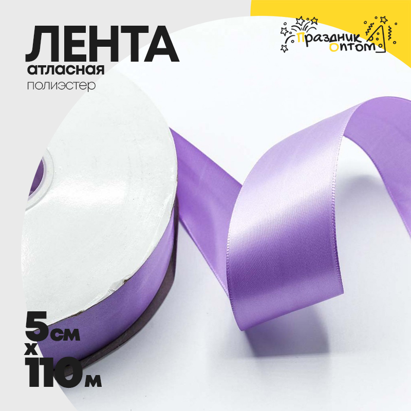 Лента Атласная 5см х 110м Полиэстер класс А (Сиреневый)
