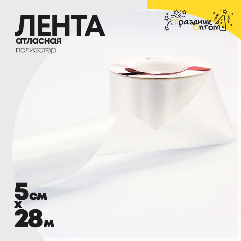Лента Атласная 5см х 28м Полиэстер класс А (Белый)