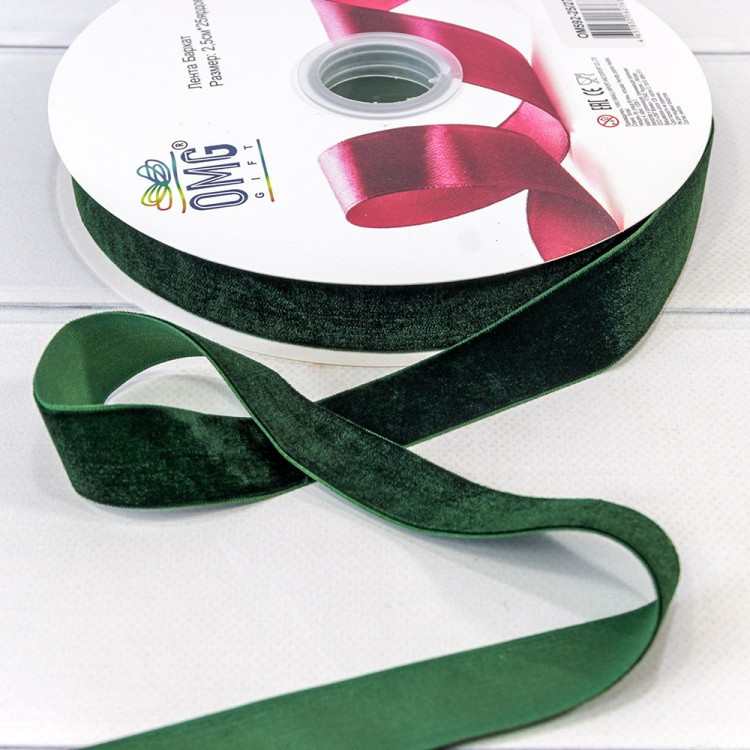 Лента Бархатная 2,5см х 28м (Зеленый)