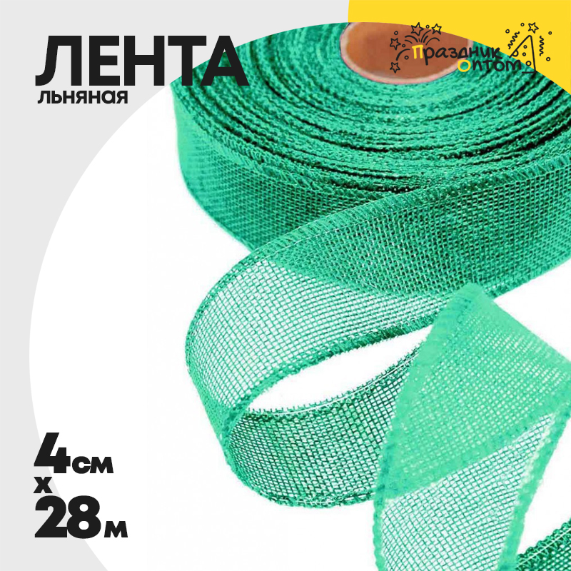 Лента Льняная 4см х 28м с проволокой (Бирюзовый)